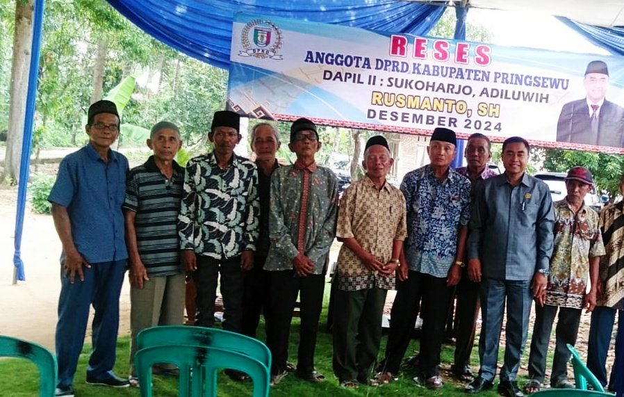 Rusmanto ,S.H, Anggota DPRD Kabupaten Pringsewu (Komisi 3) menaungi dapil 2 Sukoharjo dan Adiluwih menggelar Reses akhir tahun 2024 untuk menyerap aspirasi masyarakat di dapilnya yang berlangsung di Pekon Pandansari Selatan Kecamatan Sukoharjo, pada sabtu (14/12/2024).
